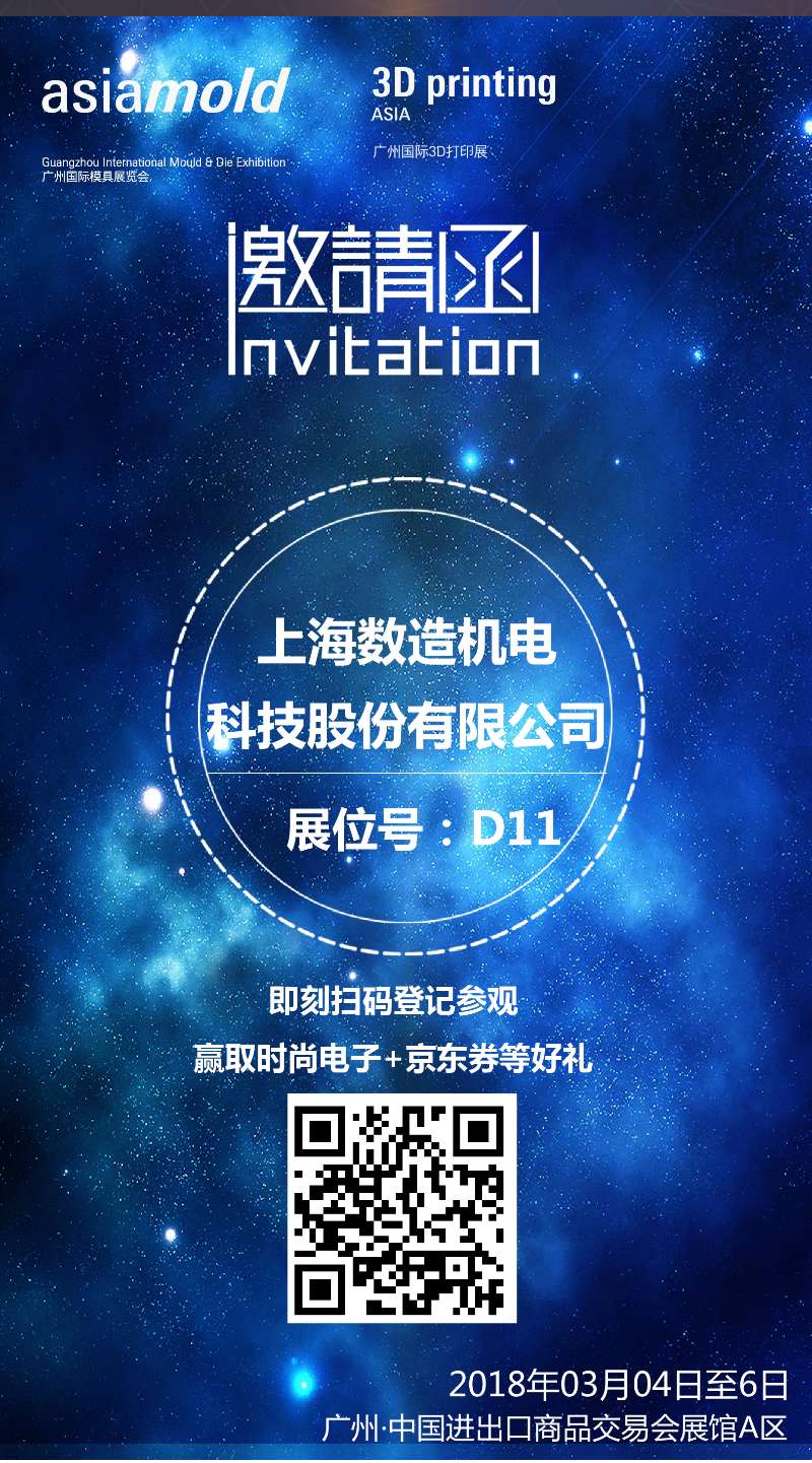 上海數造將亮相第十二屆廣州國際模具展覽會(Asiamold),上海數造的發展道路離不開您的支持與肯定。2018年3月4日-6日,廣州.中國進出口商品交易會展館......